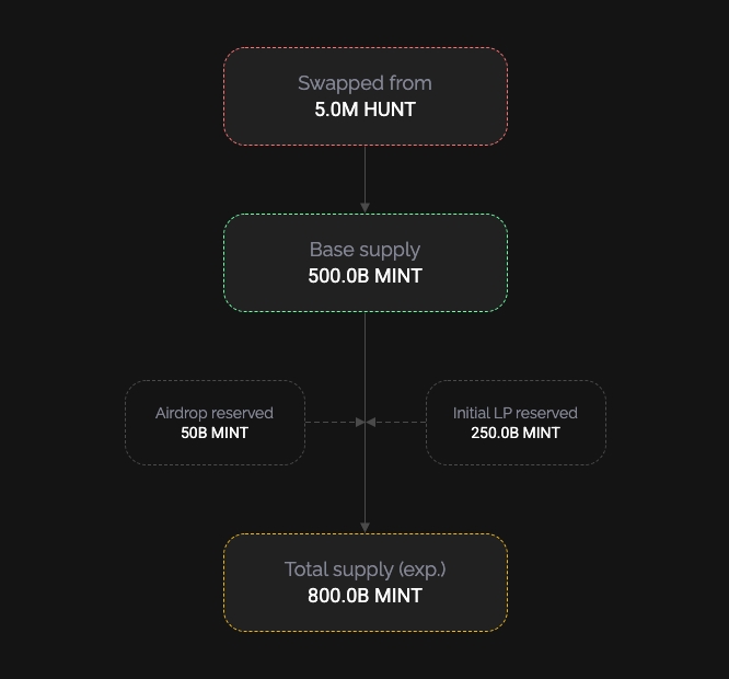 Swapped MINT from HUNT tokens → This will be the base supply.