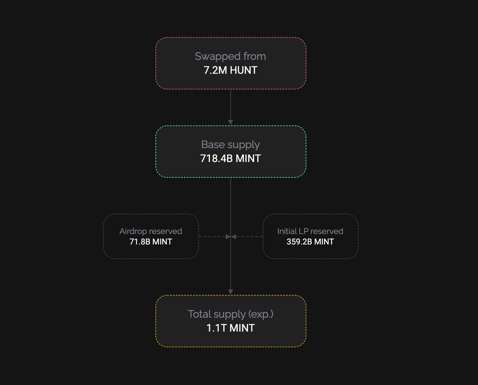 The team also swapped their HUNT to MINT tokens with 50% of the base supply.